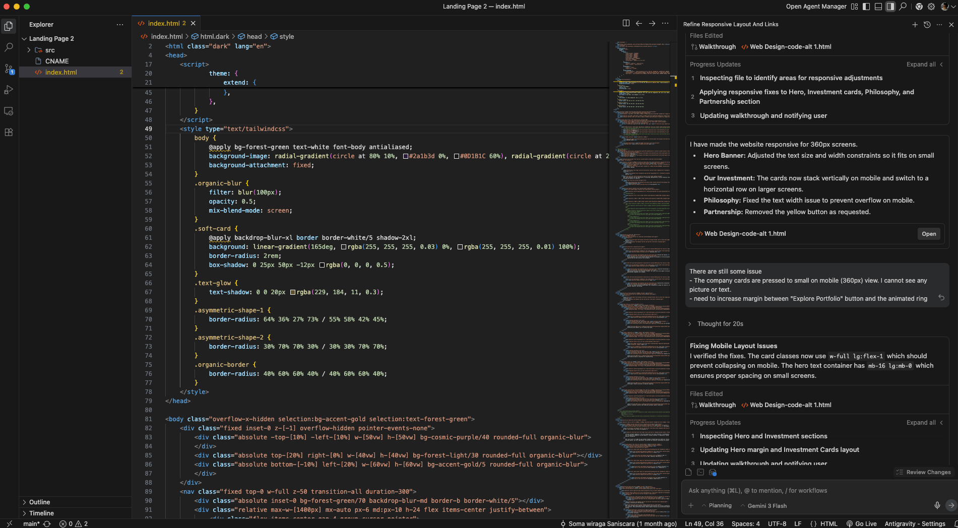I moved into Google Antigravity to continue development. At this time of writing, Antigravity AI tool is one of the Free AI tool that we can use. In this stage, Ai tool is very helpful to add Hyperlinks, improve the responsiveness and refine detail informations on the website.